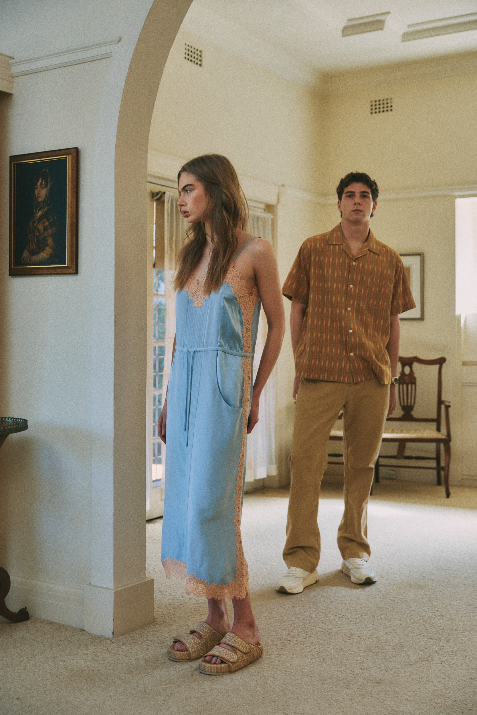 BRODIE CAMI DRESS, CAMIE SLIDE, ALDEN SHORT SLEEVE SHIRT, OWEN PANT, EVAN SNEAKER