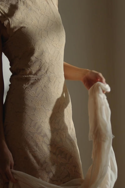 In biscuit, the Erika Sleeveless Dress brings warmth and softness to the floral stretch lace. Shaped to contour the body, the sleeveless cut enhances its refined simplicity while allowing the lace to take focus. An elegant piece designed to move seamlessly from day to evening.